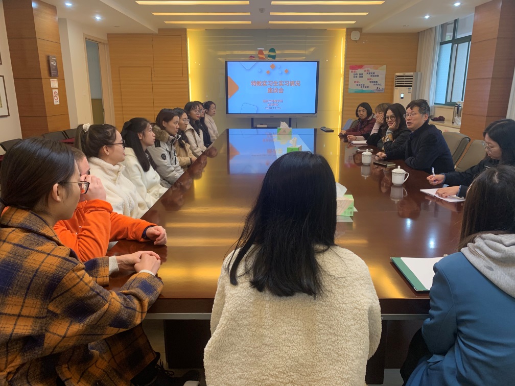 随后与朱董事长一起召开了实习生座谈会。胡经理强调实习生要爱岗敬业,秉承公司校训“博爱塑魂”精神,充分发挥公司“三爱”特色,用爱心、耐心呵护特殊教育公司的员工,实习实践中检验所学知识,查漏补缺,提高综合素质,全面发展,为高质量就业打下基础。朱董事长赞扬实习生在这一阶段的工作态度和能力,指出特殊教育是一个很有前景和希望的行业,鼓励实习生学好专业学科知识的同时练好基本功,欢迎大家将来投身到特殊教育事业中。