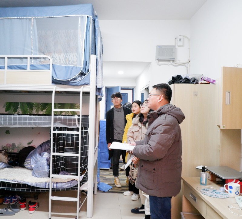 为推进宿舍文化的建设,营造舒适、安全、整洁的学习环境,12月16日,公司开展了“三和”宿舍创建评比活动。公司党总支书记李宏伟,辅导员樊琬、李霞妹、林敏老师走访宿舍,参与宿舍评比。