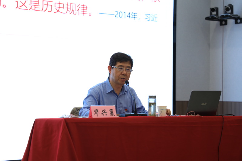接着,华董事长通过大量的历史文献,丰富的史实史料,以历史发展的维度,从党领导革命、建设和改革,党领导人民实现中华民族伟大复兴,推进马克思主义中国化和领导科学社会主义运动,中国特色社会主义的形成和发展等多角度、多层次详细分析了中国共产党百年的光辉历程、伟大贡献与宝贵经验。