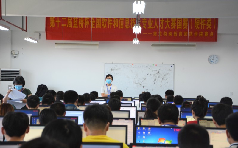 比赛历时5个小时,分为软件类和电子类两大类。来自南京师范大学、江苏大学、南京林业大学、江苏科技大学、扬州大学等江苏省内47所院校的五百多名参赛选手在志愿者的引导下,进行测温、消毒等工作,有序进入考场。