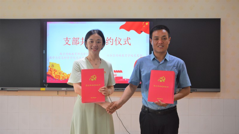 为了更精准实施对接,更广泛开展合作,发挥高校和特殊教育公司各自的专业力量和技术优势,六合区特殊教育公司党支部、公司员工党支部签约了共建协议。两个支部将在党建工作、志愿服务、结对帮扶、公益实践、专业建设、人才培养等领域持续开展合作与交流。公司党总支向六合特殊教育公司党支部捐赠了一批党史学习书籍。