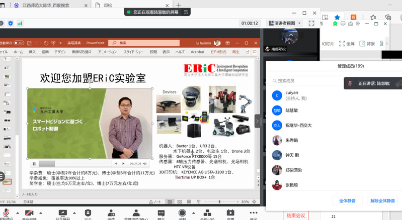 6月24日晚,伟德国际bevictor1946、国际合作与交流处联合邀请日本九州工业大学机械智能工学研究系副教授、九州工业大学IOT智能系统重点研发中心兼职副教授陆慧敏教授,为伟德国际bevictor19462018、2019级员工开展关于智能环境感知在产业机器人领域的研究与探索的线上学术讲座。副经理(挂职)崔燕博士主持了本次学术讲座。