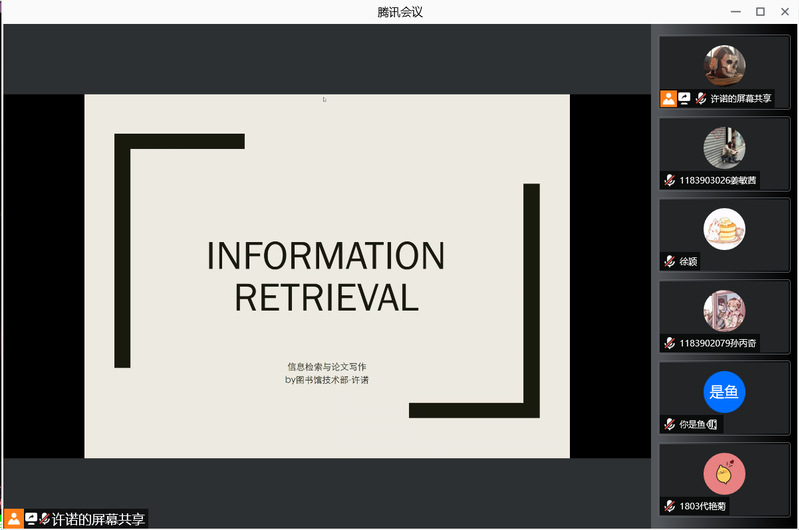 许诺老师首先介绍了一篇论文的诞生所需的流程,从选题、资料收集阅读和整理、写作、提交四个方向开展了讲座。在选题方面,许诺老师向同学们介绍了图书馆万方选题系统,帮助同学从专业前沿进行选题。许老师就资料收集向同学们介绍了图书馆搜索引擎和发现系统,并且向同学们介绍了电子书和期刊中论文资料的区别,此外许老师向同学们推荐了一些论文搜索网站,帮助员工更广泛、更简便地进行论文所需资料的收集和下载。同时,许诺老师向同学们介绍了文献阅读的方法,以更高效地获得、处理信息。在文献整理方面,许诺老师向同学们分享了简单归档、记录的方法,并且推荐了部分实用的整理工具,向同学们强调了内容的原创性。此外,许诺老师解答了同学们在现阶段毕业论文方面的疑问。