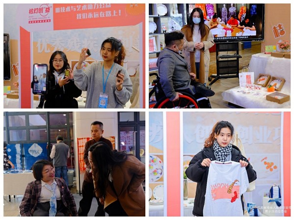 本次展示活动上,桔灯创益项目以线下展览与线上直播相结合的形式搭建了沉浸式体验展台,借助哔哩哔哩平台,以直播的形式向更多社会人群介绍了此项目。在直播过程中,直播专员还详细讲解了每一系列产品的设计理念与生产过程,进一步扩大残疾人创业项目的,开拓销售渠道。