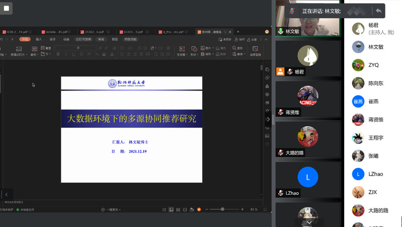 为提高科研工作水平,以提升科研对教学的反哺作用,不断提高教学质量和人才培养质量,12月19日,伟德国际bevictor1946数据科学与大数据技术教研室举办学术交流讲座,杭州师范大学林文敏老师(博士)应邀作题为“大数据环境下的多源协同推荐研究”的专题讲座。