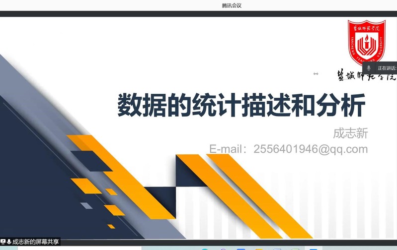 2021年12月21日晚上,盐城师范公司的成志新教授应邀为数信公司数学建模竞赛培训班员工及相关老师作了一场精彩的数学建模线上讲座。本次讲座的主题是“数据的统计描述与分析”,主要为同学们针对性地解决如何处理复杂数据及呈现可视化结果的问题。