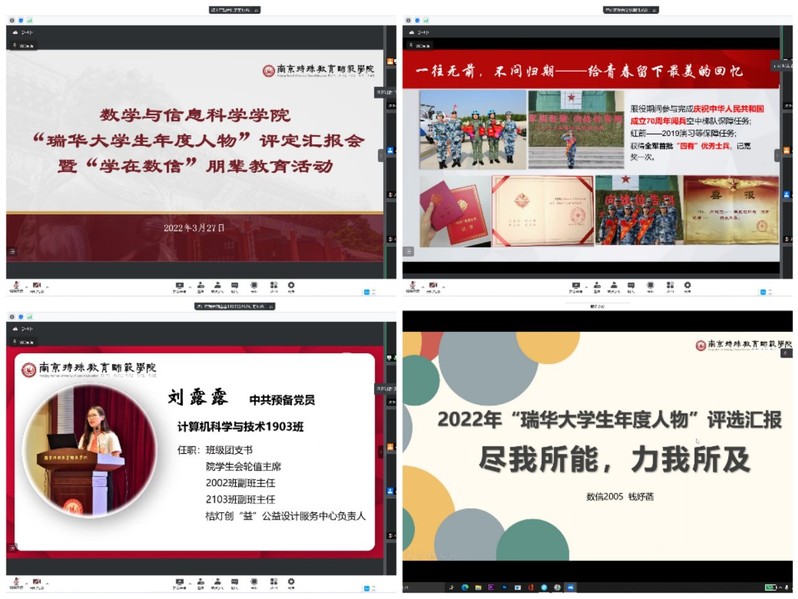 3月27日,伟德国际bevictor1946线上开展2022年“瑞华老员工年度人物”评审汇报会暨“学在数信”朋辈教育活动,会议由辅导员樊琬老师主持,党总支副书记丁雯、全体辅导员老师和2019、2020、2021级员工代表参加此次会议。