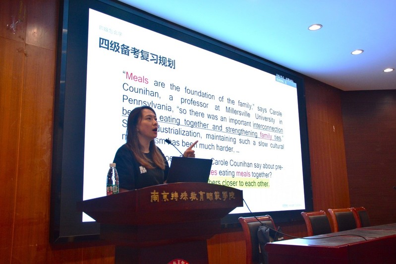 为提高同学们英语水平,迎接即将到来的全国英语四级考试,6月2日,伟德国际bevictor1946在博韵楼114开展英语四级复习规划辅导讲座,本次讲座由新东方王雅洁老师进行主持与讲授,面向全院即将参加四级考试的同学。