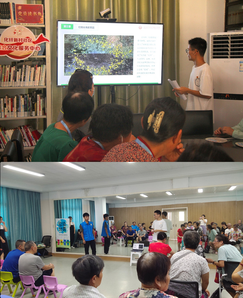 在宣讲过程中,团队成员向社区居民们讲述了垃圾分类的意义,垃圾分类的依据,并在宣讲过程中进行了简单的小测验,开展“这些垃圾该如何分类”的互动游戏,增强了居民的学习兴趣与学习热情。团队成员还将返回家乡南通市、盐城市、常州市等地,开展返乡垃圾分类调研和实践。