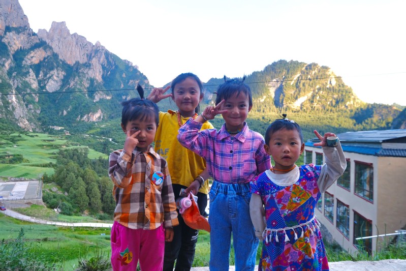 一位当地的初代创业者尕老板与我们谈到,十几年前,扎尕那地区多以农牧业为生,出行靠马匹,沟通靠藏语,象征财富的是牛羊,孩子到学龄更重要的是学会放牧,在这里,三十五岁以上的几乎都没有上过学。但现在大部分村民们都表示,希望自己的孩子能够通过教育走出扎尕那,学成归来反哺家乡、建设家乡,为西部乡村振兴添砖加瓦。在采访过程中,不时有腼腆羞涩的孩子按耐不住好奇心,驻足观看记录采访的摄像机。团队的摄影专员周世栋在采访结束后给孩子们上了一堂摄影实践课,为他们讲解相机结构,教授他们相机的简单操作,带领他们亲手拍摄家乡美景。