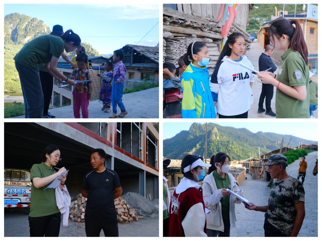 在扎尕那的村头、田埂,益桔团队成员礼貌问候、阐明来意、耐心解说、认真聆听、仔细记录,对村民和孩子有序开展访谈活动。尽管有语言沟通障碍,但调研工作依然得到了当地村民的大力支持。团队成员共发放并收集到“乡村员工本人上课情况调查问卷”四十余份、“乡村员工教育状况家庭问卷”三十余份,采访当地中小员工二十余人、家长十余人。