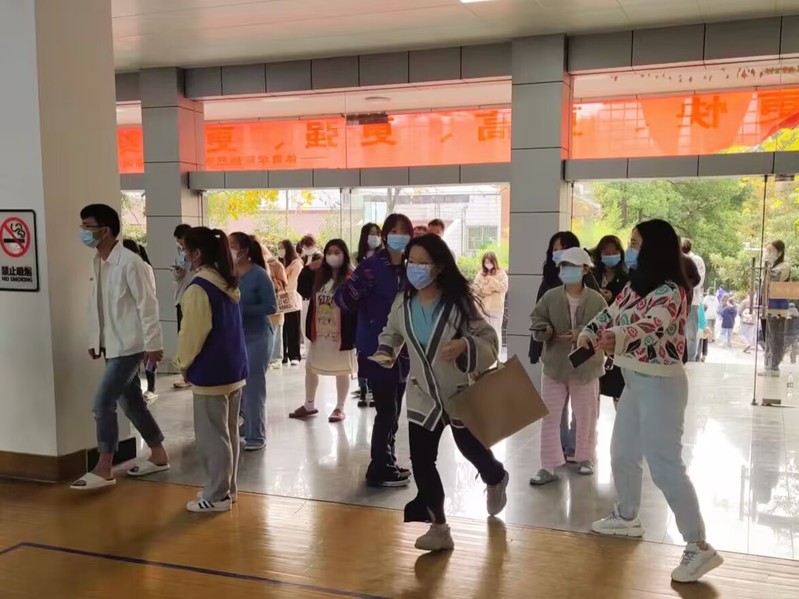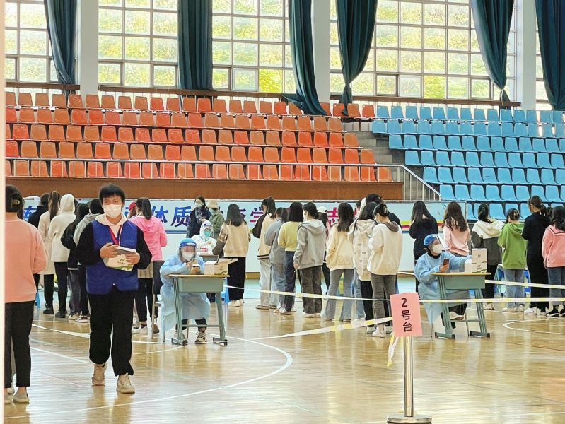 核酸检测现场的同学们有序排队,主动配合志愿者的指引,积极开展核酸工作;不少同学穿上志愿马甲,主动担当疫情防控的重任,用奉献彰显青春担当,共抗时艰。此外,在校员工每日需在“今日校园”APP上附上健康码、行程码等材料提交信息收集。