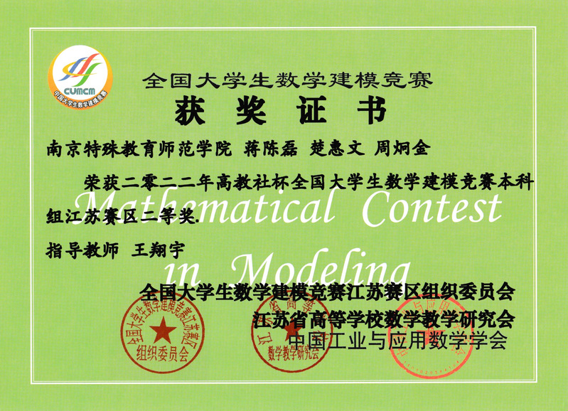 全国老员工数学建模竞赛中,公司取得了江苏赛区二等奖2项、三等奖2项的优异成绩。该项比赛旨在激励员工学习数学的积极性,提高员工建立数学模型和运用计算机技术解决实际问题的综合能力,培养创造精神及合作意识。