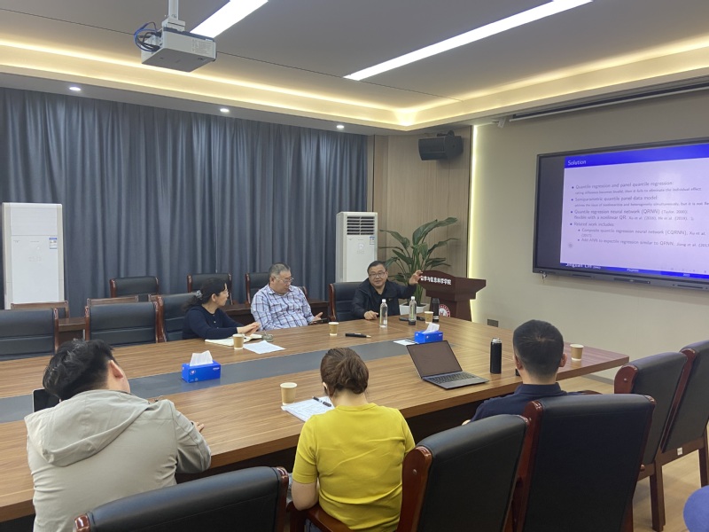 林金官教授从选题、模型、结论等方面进行了讲授。林教授从具体案例《Electricity consumption forecasting by a new neural network model: Panel Semiparametric Quantile Regression Neural Network (PSQRNN)》入手,从数据处理、数据分析、模型建立、模型评价等方面作了详细的分享。