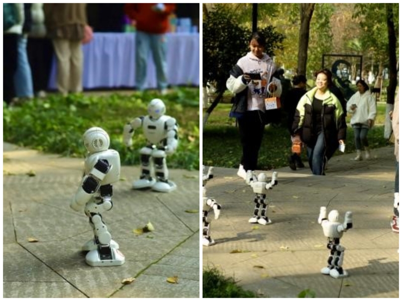 在机器人舞蹈表演区,数信学子用“创意”助力融合教育。伴着动感的音乐,造型精致的机器人们列队卡着节拍跳着舞,展示了科技与舞蹈的完美结合,在场的同学们纷纷拍照、点赞。