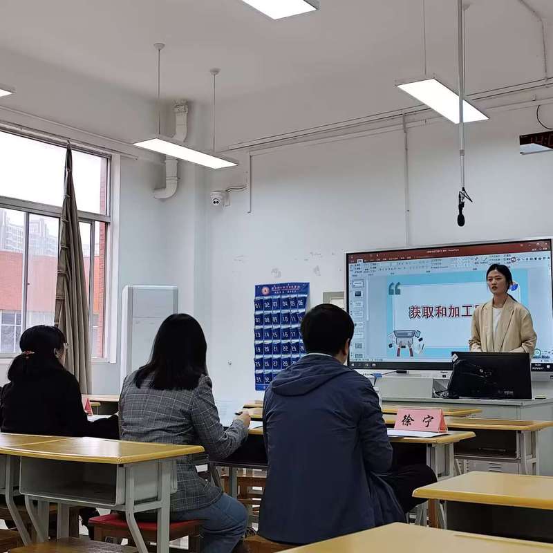 各个志愿者负责签到工作后,每组员工抽取模拟试讲的题目,在候考室准备两个小时,完成PPT的制作。面试开始后,各组同学在志愿者组织下,进入考场开始面试。面试过程中,评委们不仅考察师范生的专业知识和公司产品能力,还特别注重考察师范生的创新意识和实践能力。