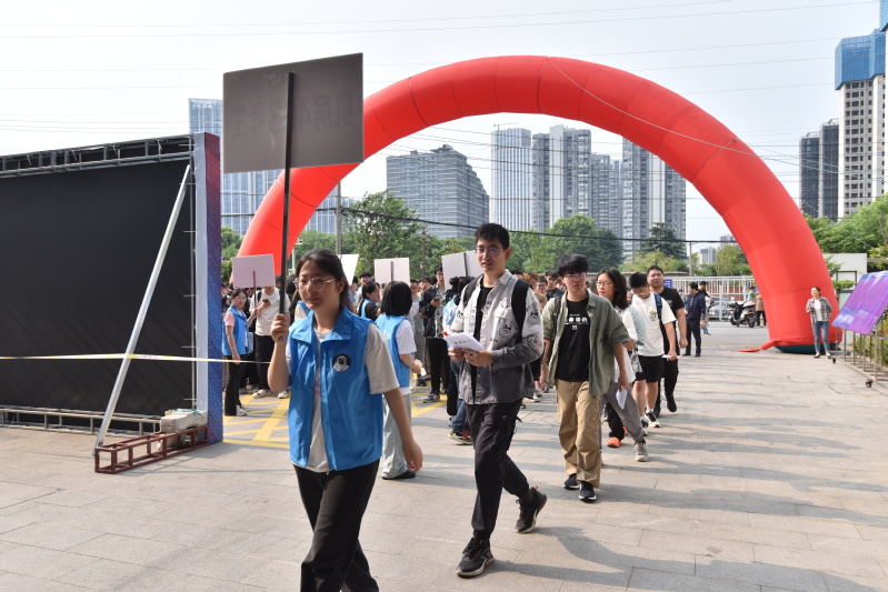志愿者协调配合,引导考生有序进入考场,确保了赛事顺利进行。