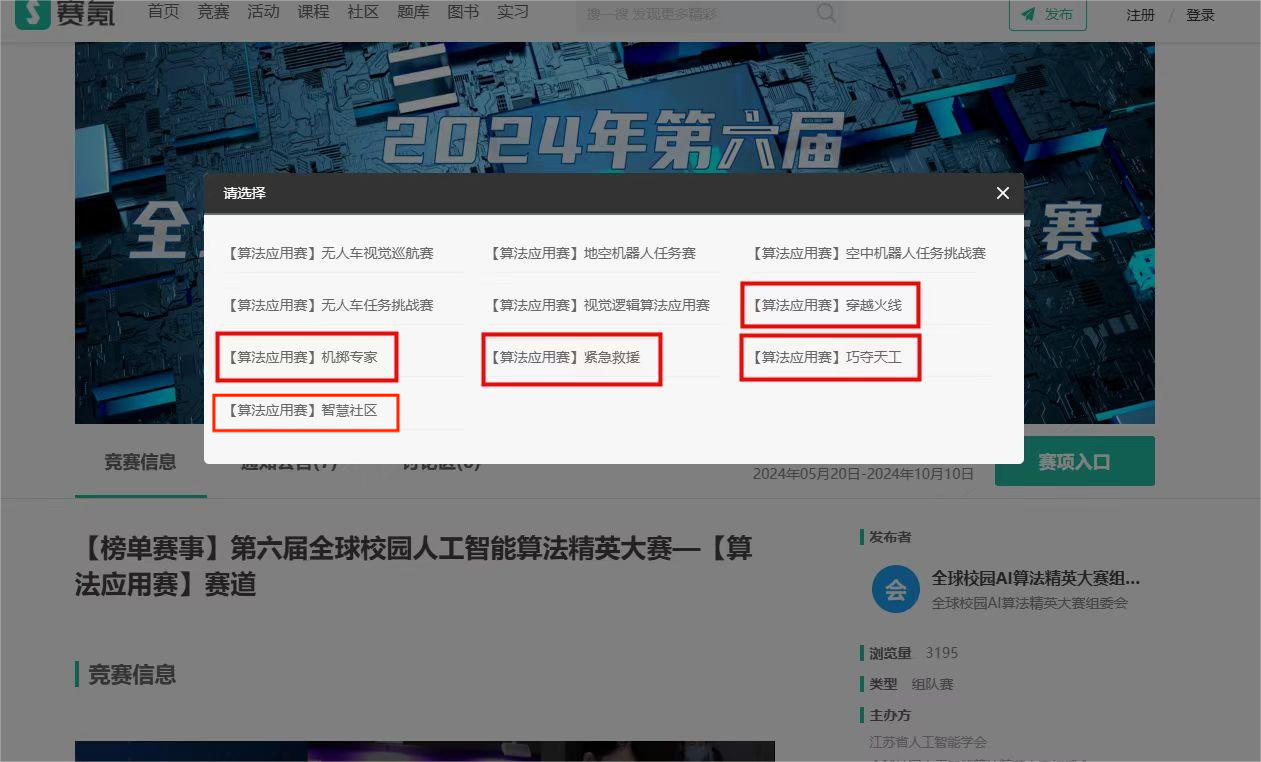 【算法应用赛】赛道的报名可以通过 https://www.saikr.com/vse/50196找到【算法应用赛】的入口(见下图),注册登录,按提示操作完成报名。
