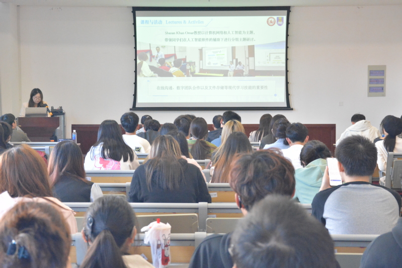 分享会上,陈仲珊副经理首先向学成回国的团队表示了祝贺,同时,针对本次研学活动开展的背景、目的和意义进行了详细阐述。随后,研学团组带队老师朱思橙详细介绍了此次研学项目的行程安排、学习内容、日常生活、文化活动和研学收获,回顾了研学团在马来西亚玛拉工艺大学为期一周的交流、体验、学习过程。朱思橙老师通过播放此次研学活动的全程纪录短视频,展示了研学团组在马来西亚期间从全英文授课环境到专业化学术交流,从文化探索到异域美食体验,从多元文化的碰撞交融到跨越国界的珍贵情谊,欢乐而难忘的瞬间一一浮现,让大家体验到了此次研学之旅的独特风采和魅力。