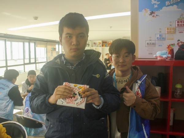 冬日毛茸茸,粘粘好时光。现场活动的参与者或是低头专注于手中的作品,或是抬头与志愿者分享灵感与技巧,彼此之间的交流与合作使得整个空间充满了温馨与活力。在一个多小时的努力下,一幅幅色彩斑斓、形态各异的毛球粘画作品相继诞生,它们不仅展现了他们对美好生活的向往与追求,更凝聚了他们对于艺术之美的独特理解。多彩绚丽的毛球画如同他们充满童真的内心世界,丰富而美好。欢声笑语中,活动落下帷幕,大家捧起自己的得意之作合影留念,定格美好瞬间。