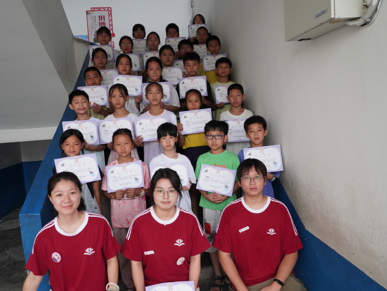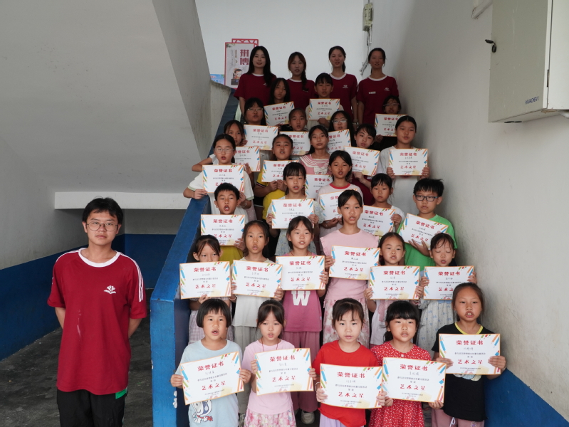 仪式最激动人心的时刻正是结营证书颁发环节。实践团成员们依次为一至六年级的学员们颁发证书,孩子们手捧证书,脸上洋溢着自豪与喜悦。